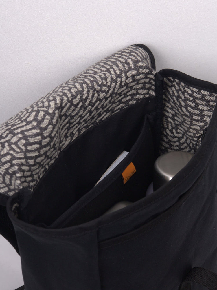 Organisation is practical and restrained. A front flap pocket provides quick access to essentials, while inside you’ll find a padded laptop sleeve and a secure zipped pocket for valuables. The layout is purposeful rather than complex – designed to carry what matters without unnecessary compartments.