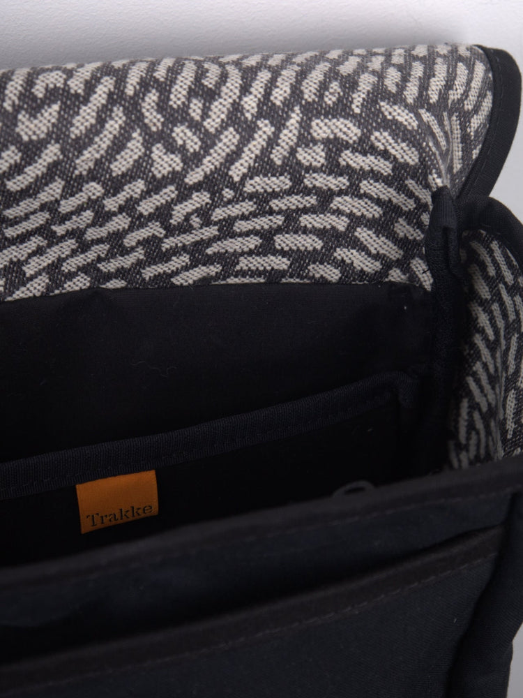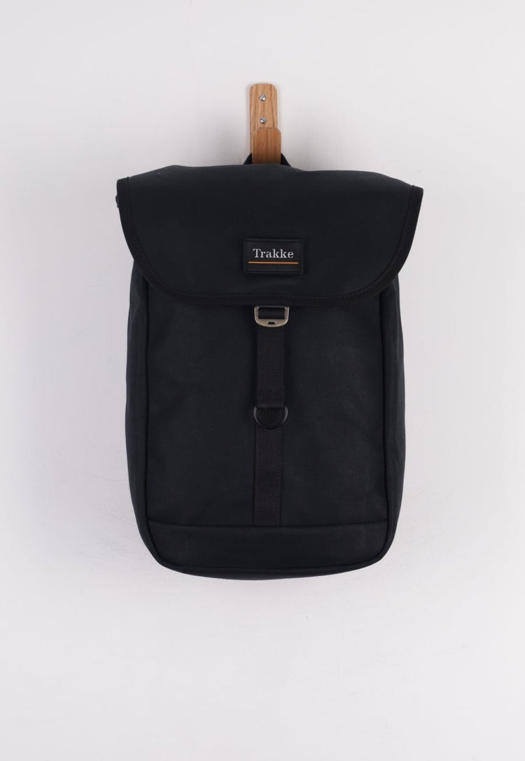 Adjustable shoulder straps are lined with breathable mesh for comfort and stability, and the structured body helps the pack hold its shape throughout the day. The lid secures with a double G-hook closure, finished with a removable Trakke Velcro badge for subtle branding.