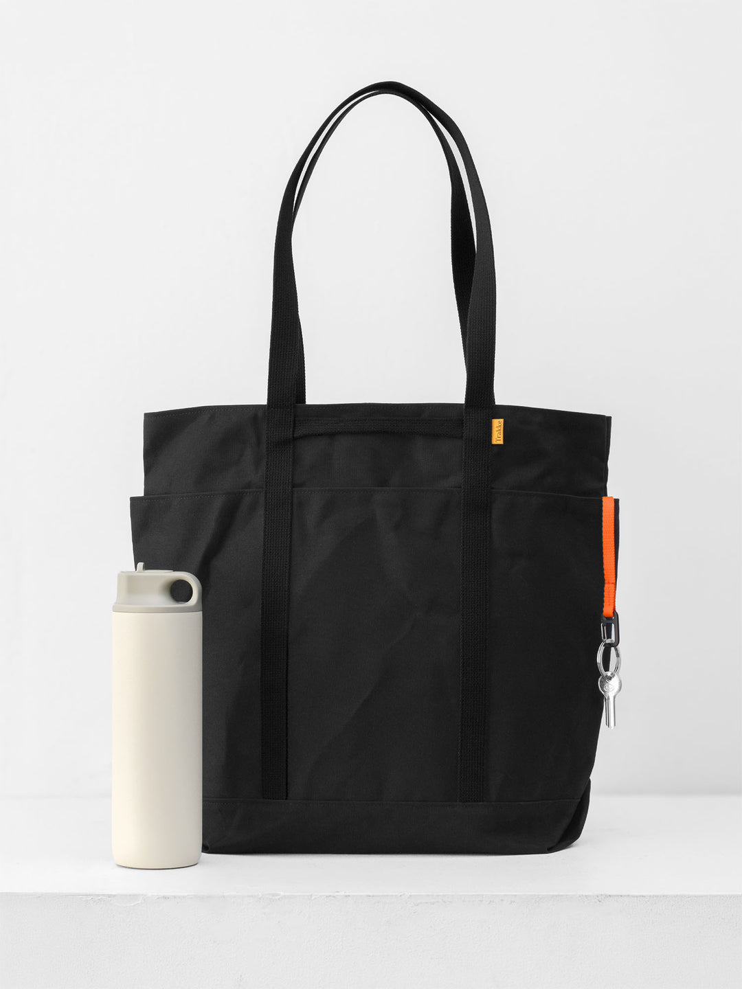 Overall it's a pretty good tote, good quality and well-constructed. Only thing that doesn't quite work for me is the pocket layout. Would've preferred having them inside and a zipper on the one with the keyring.